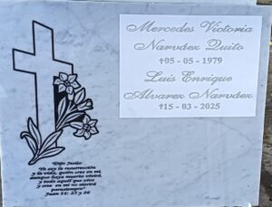 Letras elaboradas en cobre sólido e incrustadas cuidadosamente sobre la superficie de la lápida.